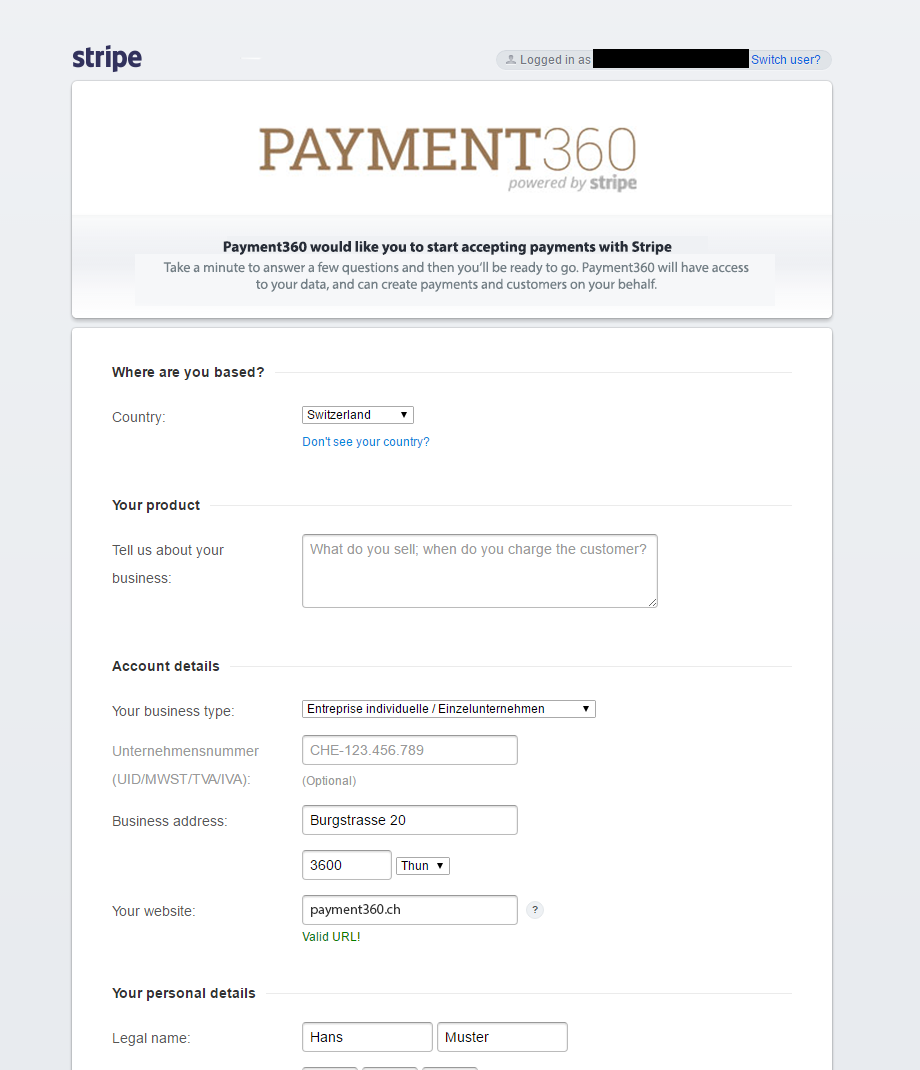 Konfiguration Payment360 Payments (Stripe als Kreditkarten Acquirer)