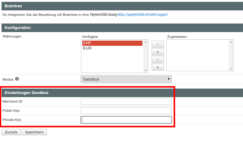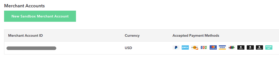 8. Um weitere Währungen zum Merchant Account zu ergänzen, bitten wir Sie Braintree Support Team zu kontaktieren.