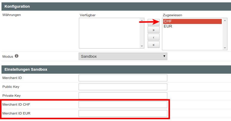 Pro Währung muss hier ein Merchant Account hinzugefügt werden