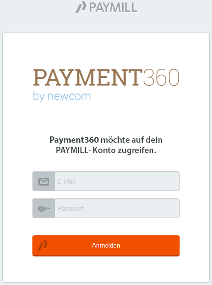6. Damit Payment360 auf Ihr PAYMILL-Konto zugreifen kann, müssen Sie anschliessend Ihre PAYMILL Login-Daten angeben.