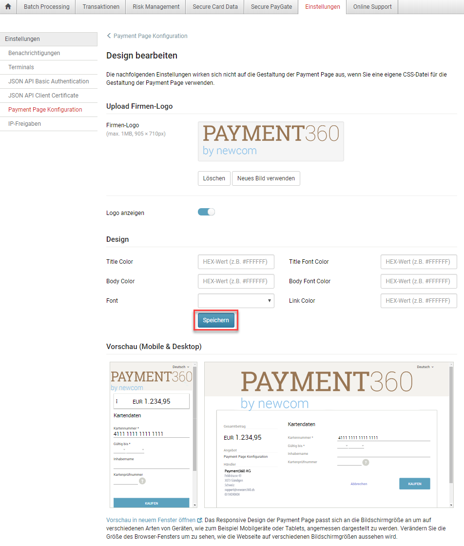 Im Saferpay BackOffice unter «Einstellungen» > «Payment Page Konfiguration» können Sie Ihre Saferpay Checkout-Seite personalisieren.